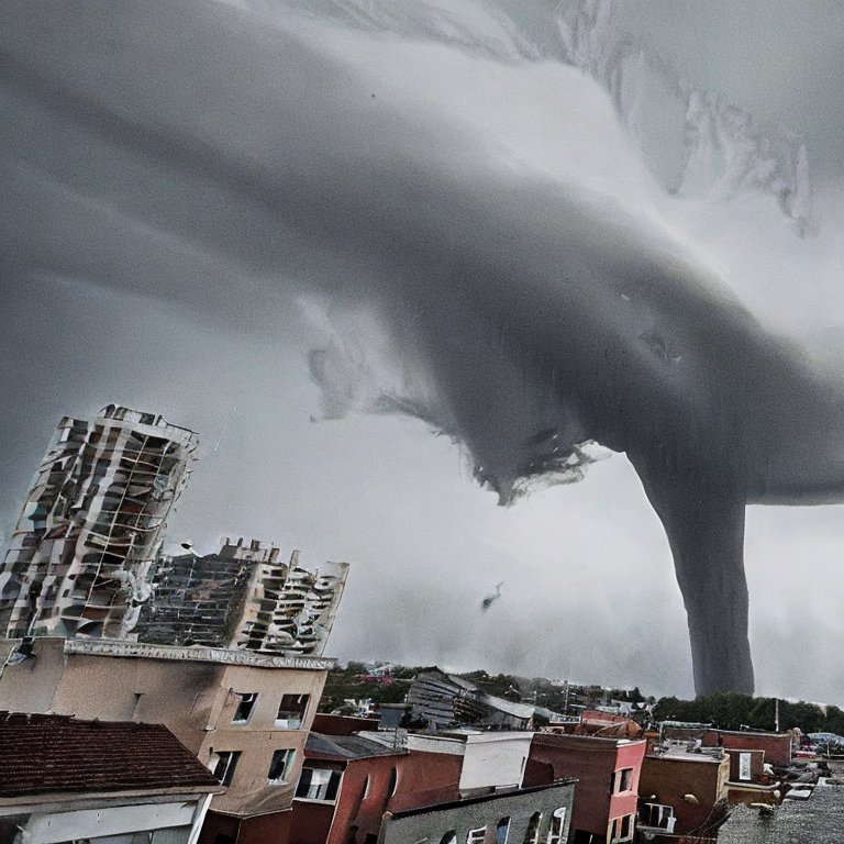 A tornado forming in a city.