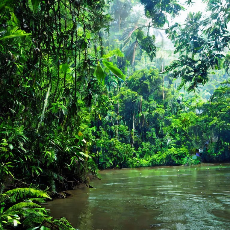 A lush Amazon jungle with a river.