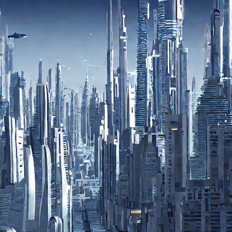A futuristic city skyline.