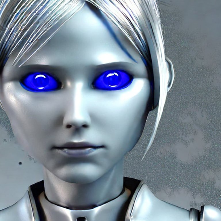 A female android with blue eyes.