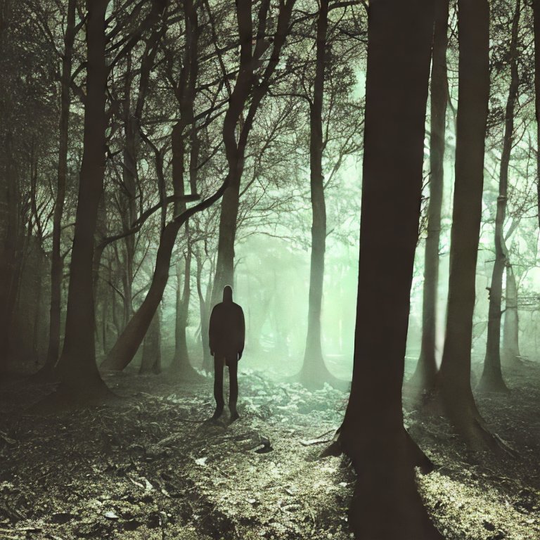 A shadowy figure in a forest.