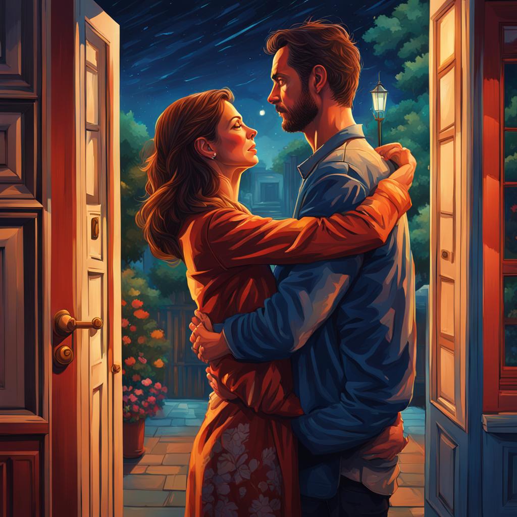“Yeah…alone,” she said distantly, holding his hand as they stood together in the foyer.