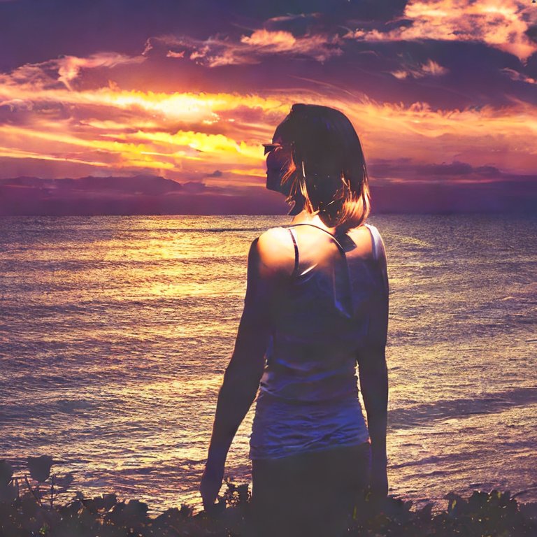 A beautiful woman admiring a sunset.