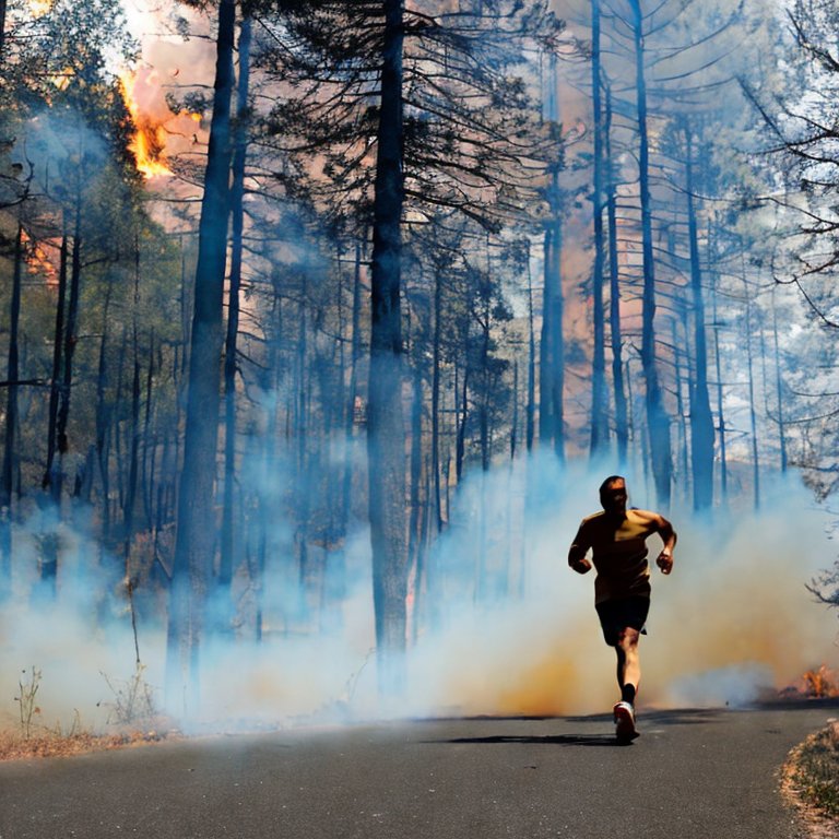 A man running from a forest fire.